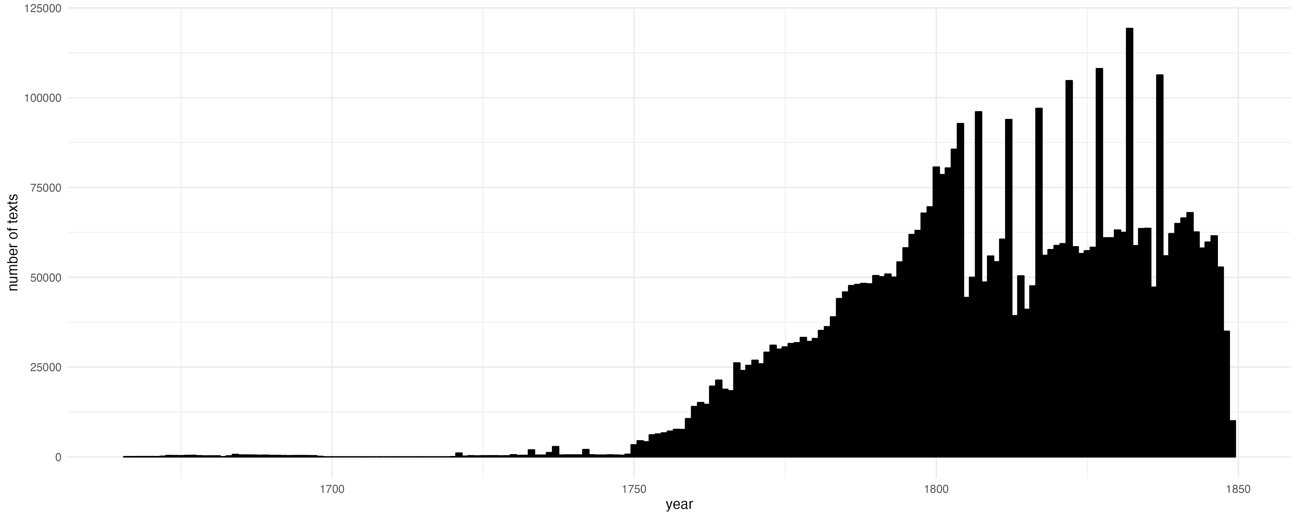 The distribution of texts pr. year is as follows: